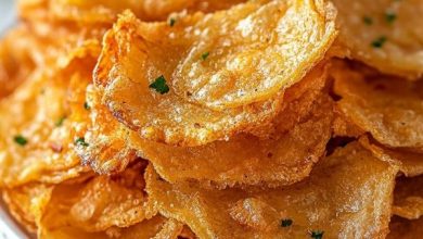 These crispy homemade baked potato chips are a healthier alternative to store-bought potato chips and are surprisingly easy to make!…