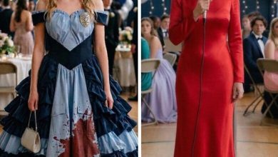 My Daughter Made Her Prom Dress Out of Her Late Father’s Uniform – When Her Mean Classmate Poured Punch on It, the Girl’s Mother Grabbed the Mic and Said Something That Froze the Whole Gym