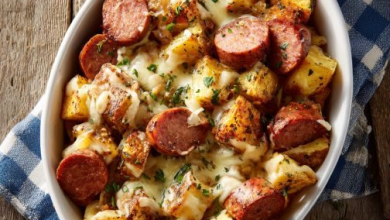 Oven-Baked Cheesy Sausage and Potato Bake This Oven-Baked Cheesy Sausage and Potato Bake is a simple, rustic sheet-pan meal. The…