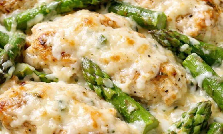 This creamy asparagus chicken is my idea of a perfect spring Sunday dinner, especially when fresh asparagus is at its peak. My grandmother swore by the trick of nestling chicken into a shallow bath of cream so it bakes gently instead of drying out. The result is tender, flavorful meat and a rich sauce that perfumes the whole kitchen. It’s a classic Midwestern approach—simple pantry staples, one pan, and just enough cheese to make it feel special without fuss. If you can turn on the oven and slice asparagus, you can make this, and it’s exactly the kind of dish that draws people in as the aroma drifts from the kitchen.
