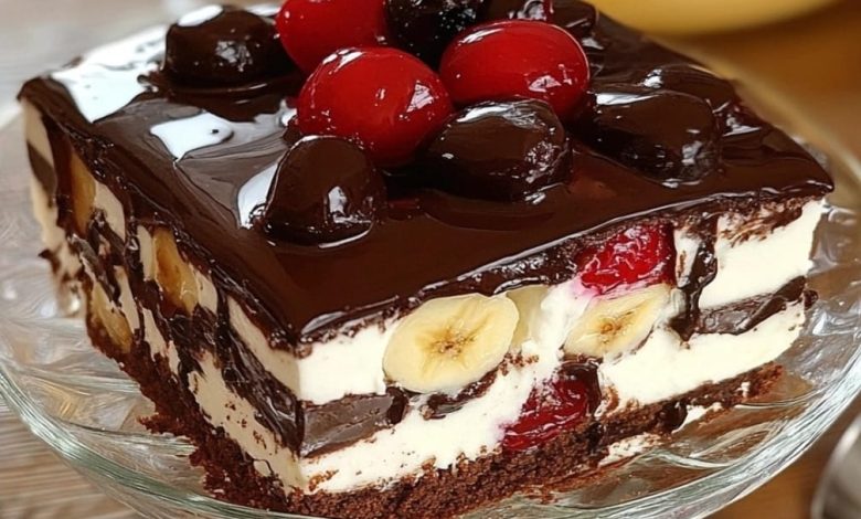 4. Prepare the Chocolate Topping: Melt chocolate and stir in warm cream to create a smooth, pourable sauce. Drizzle chocolate sauce over the assembled cake.