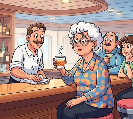 She grins and says, “Sonny, when you’re my age, you’ve learned how to hold your liquor. But holding your water… well, that’s another story!”
