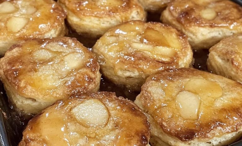 - Spoon apple pie filling onto the tops of the biscuits, arranging evenly.