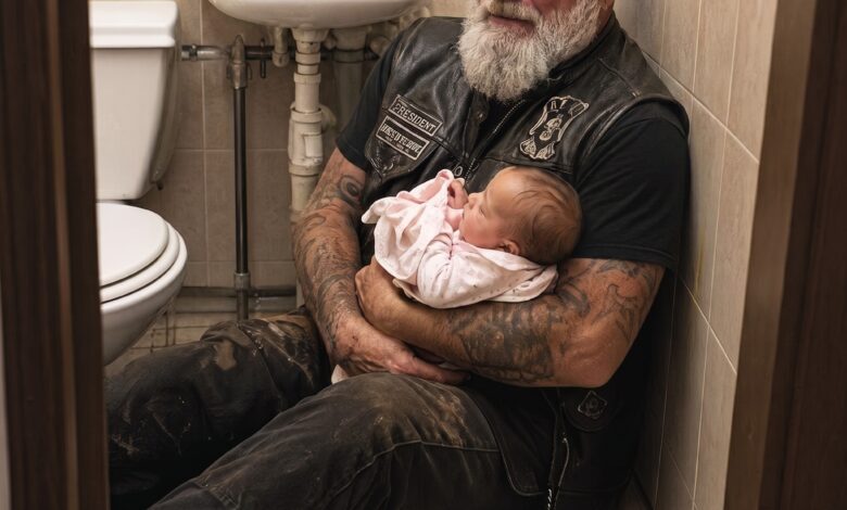 The scene inside was heartbreaking. This massive man was slumped against the tiled wall, his head in his hands. The baby lay on a changing pad on the floor, her diaper on backward, unfastened, and useless. I knelt beside him, my knees hitting the cold floor, and told him to let me help. Within ninety seconds, the baby was clean and dry. She was a beautiful little girl, no more than three months old, with a shock of dark hair. As soon as the discomfort of the soiled diaper was gone, her screams faded into soft, rhythmic whimpers. She began to root against my hand, her tiny mouth searching for milk.