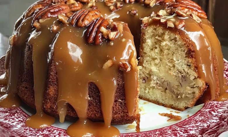 Rich, buttery, and studded with toasted pecans, this Southern-inspired pound cake is pure comfort in every slice. Finished with a warm caramel glaze and a sprinkle of extra pecans, it’s the kind of dessert that turns any gathering into a celebration.