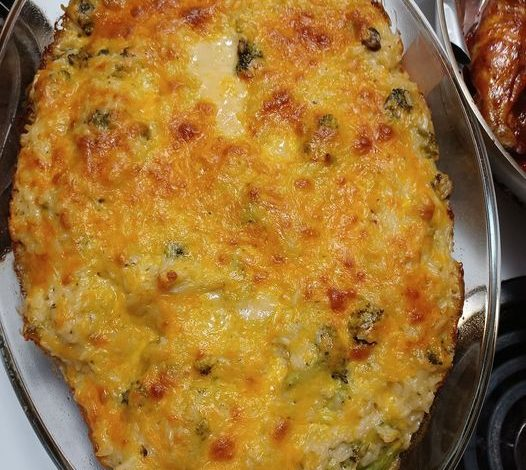 “Cheesy Chicken, Broccoli, and Rice Casserole”