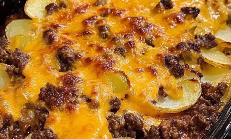 This hearty Meat and Potato Casserole is a comforting, all-in-one meal that’s perfect for a family dinner. Layers of tender ground meat, thinly sliced potatoes, and savory seasonings are baked under a blanket of bubbly, melted Cheddar cheese. It’s a simple, delicious dish that’s easy to customize.