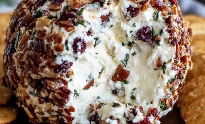 Rolled in a jewel-toned coating of toasted pecans, cranberries, and fresh chives, it’s not just delicious—it’s a centerpiece.