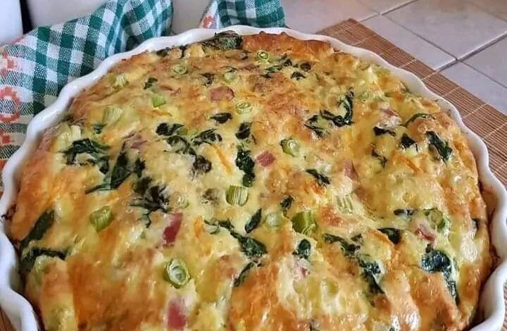 CRUSTLESS QUICHE WITH BACON SPINACH CARROTS SPRING ONIONS & CHEESE – BAKED FRITTATA