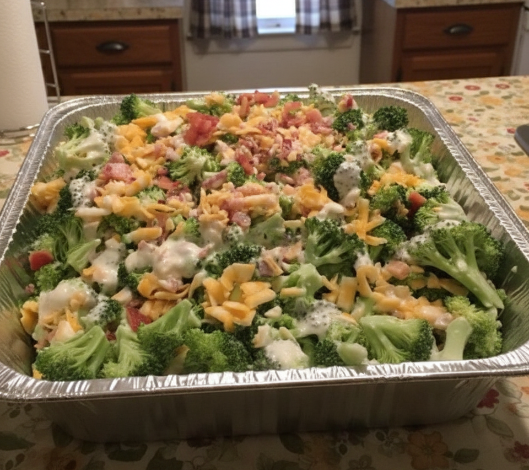 - Step 3: Dress the Salad: Pour the creamy dressing over the broccoli mixture. Stir well until all ingredients are evenly coated.