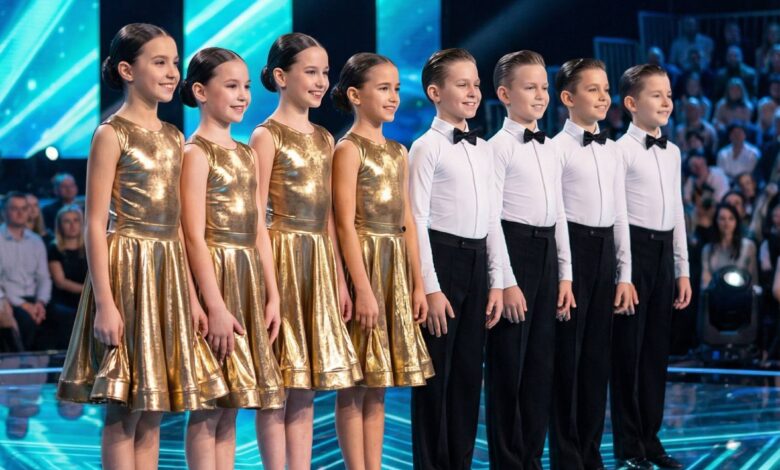 When eight young dancers stepped onto the stage dressed in coordinated gold and black ballroom attire, the atmosphere felt light and almost predictable. The boys stood neatly in white shirts with black bow ties and tailored black trousers, while the girls wore shimmering metallic gold dresses that caught the stage lights with every small movement. They looked polished, disciplined, and charming — but few in the audience seemed prepared for what would follow.