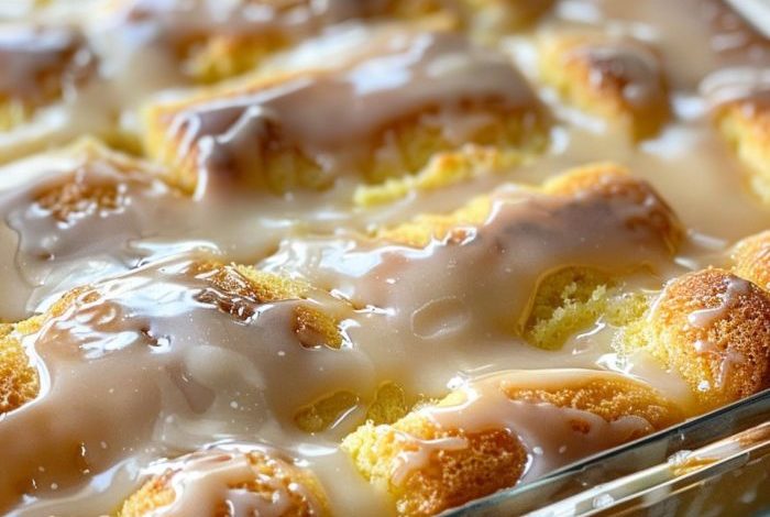 Honey Bun Cake captures the flavors of everyone’s favorite pastry in a moist and delightful cake. This recipe combines a simple cake batter with a gooey cinnamon sugar layer and a sweet honey drizzle, all topped with a luscious vanilla glaze.