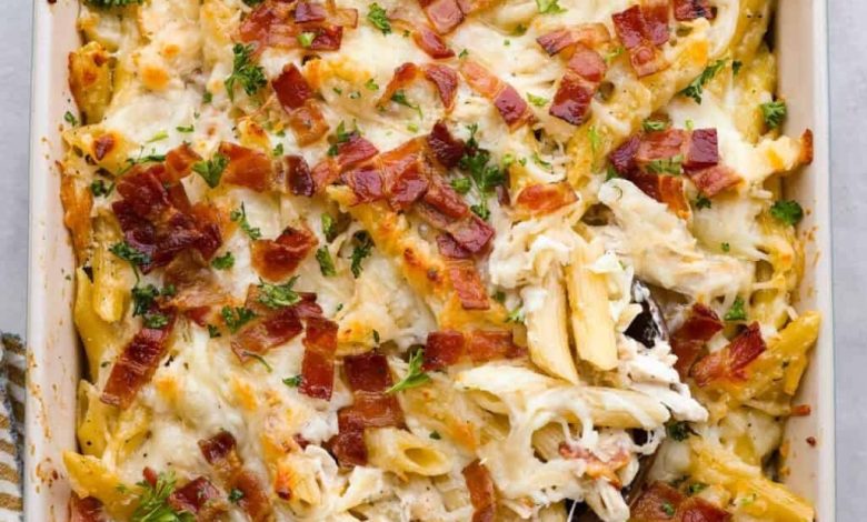 This recipe combines the creamy goodness of Alfredo sauce with the zesty flavors of ranch dressing, crispy bacon, and juicy chicken to create a heartwarming Chicken Bacon Ranch Pasta Bake. It’s a perfect dish for busy weeknights, potlucks, or feeding a crowd.