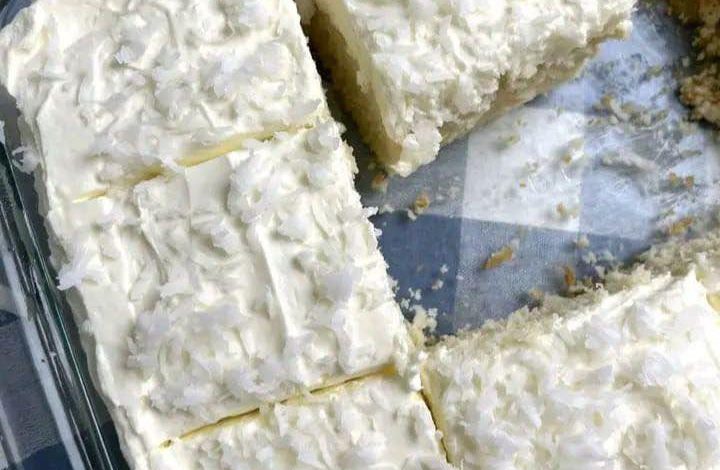 - Step 6: Frost & Garnish: Spread the whipped cream over the cooled cake and sprinkle with additional shredded coconut. Slice into squares and serve.