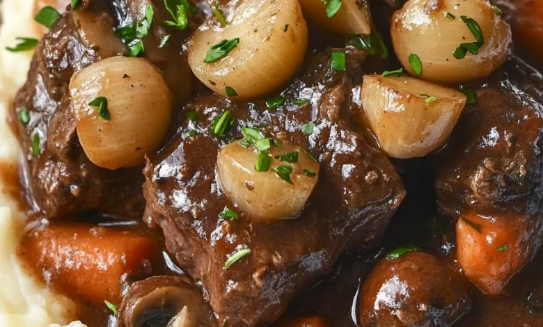 The scent of Beef Bourguignon simmering in my grandmother’s cottage kitchen was more than just a signal of celebration—it was a portal to her past. In the heart of Burgundy, she’d stir the pot with a timeworn wooden spoon, her stories flowing as freely as the wine she poured into the dish. This recipe isn’t just about tender beef and rich sauce—it’s about legacy, laughter, and the kind of love that simmers slowly, just like the stew itself.