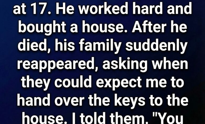 She spoke with a staggering sense of entitlement, explaining that since Daniel was “their son,” the house was rightfully theirs—a family asset that should return to the fold. I stood there in stunned silence, looking at the people who had abandoned a teenager to the streets, who had ignored every birthday, skipped every milestone, and remained silent during his grueling battle with cancer. Now that he was gone and had left behind a valuable piece of real estate, they were suddenly interested in the “bonds of blood.” They spoke as if they had a legitimate claim to a life they had never nurtured and a home they had never helped build. I didn’t scream or throw them out; instead, I felt a strange, cold calm wash over me. I told them that if they truly believed they were entitled to his legacy, there was one thing they needed to see first.
