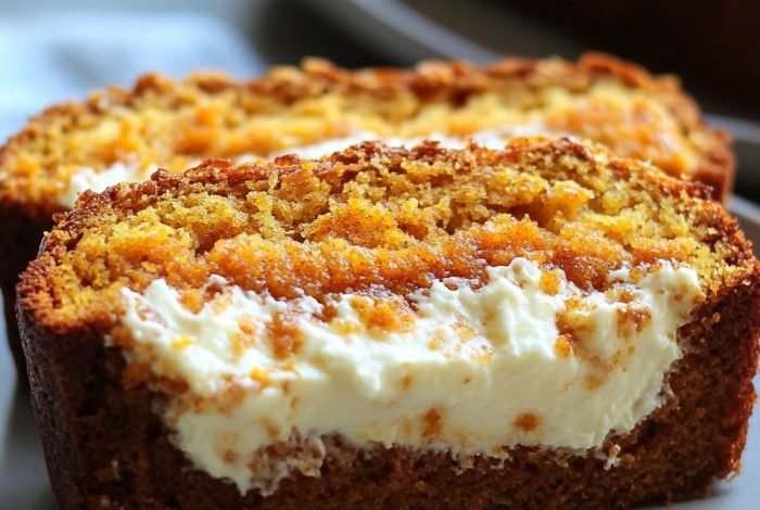 This delightful pumpkin cream cheese bread combines the flavors of pumpkin and cream cheese for a moist and decadent treat. The marbled effect created by swirling the two batters together adds a visual appeal to this delicious dessert.