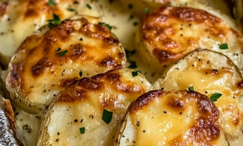 - Bake on a baking sheet for 35-40 minutes, until potatoes are tender and cheese is bubbly and golden.