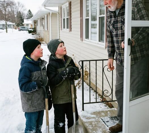 “Please, mister,” the older one said, voice steady but urgent. “We can shovel your driveway. The walk. The steps. All of it.”