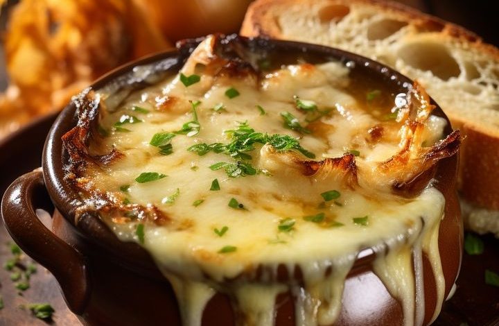 This hearty French onion soup is a classic comfort food, perfect for a chilly evening. Traditionally made with slowly caramelized onions and a rich beef broth, this recipe uses a slow cooker for a hands-off approach.