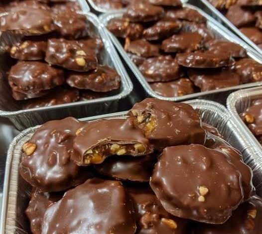 - Spoon caramel over each pecan cluster, covering the nuts.