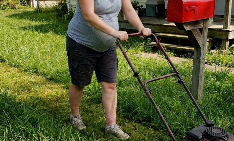 Eighty-two years old, standing behind a rusted mower, trying to cut grass that had grown far too high for her strength. She smiled when she noticed me, but it didn’t reach her eyes.