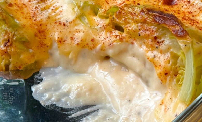 - Assemble the casserole: Pour the cheese sauce evenly over the prepared cabbage wedges in the baking dish.