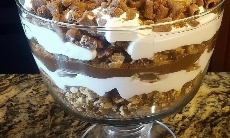 Assemble the Dessert: In a large trifle bowl or serving dish, start with a layer of brownie squares.