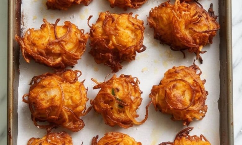 3. Fry the Fritters: Heat vegetable oil in a skillet over medium heat until it reaches 365°F. Carefully spoon the onion batter into the hot oil, forming small fritters. Fry each side until golden brown, typically 2-3 minutes per side. Be sure to fry in batches to avoid overcrowding the skillet.
