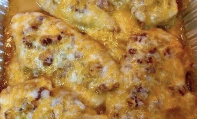 5. Assemble the Dish: Place the pan-fried chicken breasts in an oven-safe dish. Top the chicken with sliced mushrooms, halved bacon strips, and a generous amount of shredded Colby Jack cheese, ensuring the chicken is completely covered.