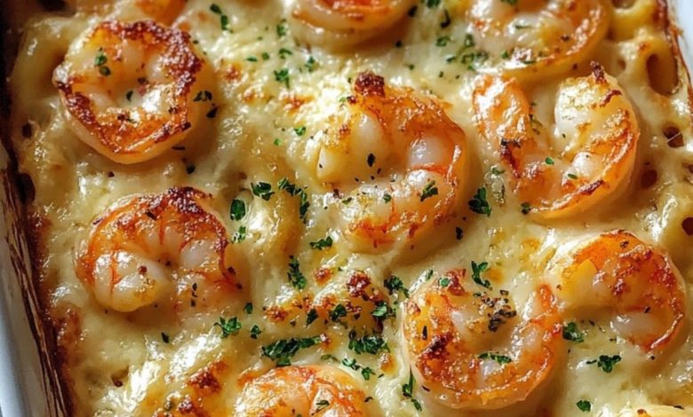 - Step 4: Assemble the Bake Return the cooked shrimp to the skillet and toss them gently to coat them evenly in the delicious sauce. Transfer the entire shrimp and sauce mixture to the prepared baking dish, spreading it out evenly. In a small bowl, combine the 1 cup shredded mozzarella cheese, 1/2 cup grated Parmesan cheese, and 1/4 cup chopped fresh parsley. Sprinkle this cheese and herb mixture evenly over the top of the shrimp and sauce in the baking dish.