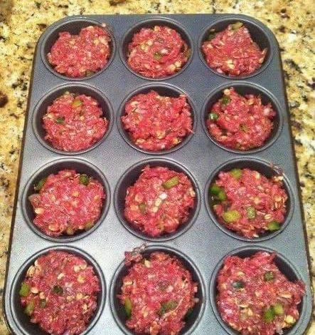 Fill the muffin tin: Divide the meat mixture evenly among the 10 muffin cups.