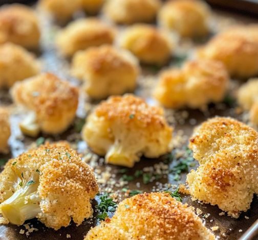 This recipe for Baked Crispy Parmesan Cauliflower is a delicious and healthy alternative to fried cauliflower. The combination of Parmesan cheese, panko breadcrumbs, and spices gives the cauliflower a crispy exterior and a savory flavor.