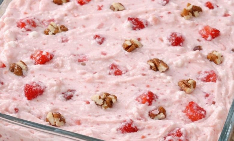 This 4-ingredient frozen strawberry fluff is one of those nostalgic, cool-and-creamy treats that feels like the perfect mix between a light mousse and a no-bake cheesecake. Creamy, fluffy, and packed with sweet strawberries, it stays soft enough to slice thanks to the whipped topping, while still giving you that refreshing frozen bite in every spoonful.