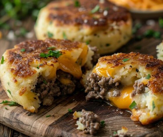 Indulge in the comforting flavors of hearty potatoes, savory ground beef, and melted cheddar cheese with these Cheesy Beef Stuffed Potato Cakes. This delicious dish combines mashed potatoes infused with a flavorful beef and cheese mixture, creating crispy golden cakes that are sure to satisfy your cravings. Perfect as a side dish or a standalone meal, these potato cakes are easy to make and bursting with irresistible flavors. Follow this simple recipe to create a crowd-pleasing favorite that will have everyone coming back for seconds!