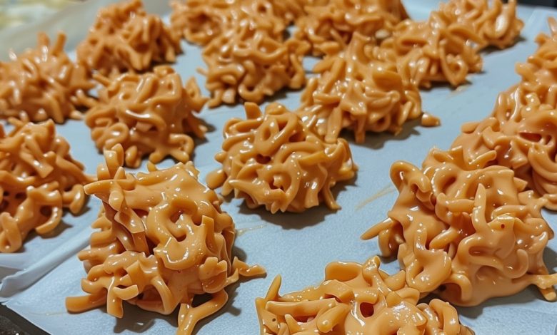 Indulge in the nostalgic flavor of these easy-to-make peanut butter haystacks. A simple combination of creamy peanut butter, rich butterscotch, and crunchy chow mein noodles creates a delightful treat that’s perfect for any occasion. No baking required, just a few simple steps to a delicious snack!