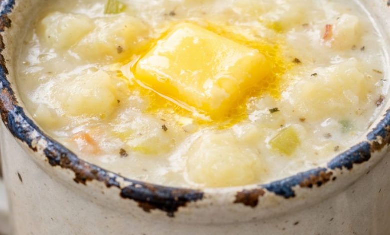 This 4-ingredient potato soup is the kind of humble supper Midwestern moms leaned on when the grocery budget was tight and a bag of russets had to stretch. Creamy, comforting, and built from pantry basics—potatoes, onion, milk, and butter—it’s the sort of honest bowl that lets the potatoes shine. No garnishes, no fuss, just the kind of soup that’s been warming kitchens long before “budget cooking” was a trend.