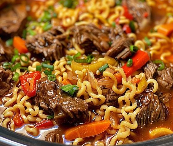 Craving comforting flavors without the fuss? This Slow Cooker Beef Ramen Noodle recipe is your answer. Tender beef chuck roast simmers in a savory broth with ginger and garlic, then gets cozy with crisp vegetables and ramen noodles for a weeknight dinner win.