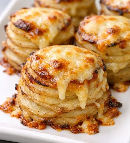 There’s something comforting about recipes that look a little fancy but are secretly effortless. These Cheesy Potato Stacks are exactly that—thin slices of potato layered with garlic butter and sharp cheddar, baked until golden and tender. Cozy enough for a weeknight, elegant enough for a holiday table, they turn humble spuds into a show-stopping side dish.