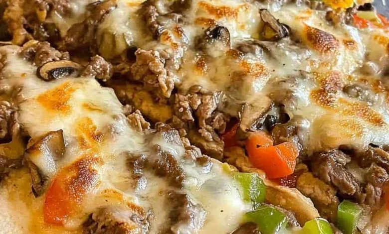 In the same pan, add the remaining olive oil. Sauté the onion, peppers, mushrooms, and garlic until softened. Return the beef to the skillet, stir well, and adjust seasoning if needed.