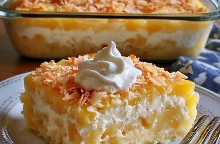 Indulge in a taste of the tropics with this delectable Pineapple Coconut Dream Cake! This easy-to-make dessert combines a moist yellow cake with a tangy pineapple filling, a creamy pudding layer, and a fluffy whipped topping, all topped with a generous sprinkle of coconut.