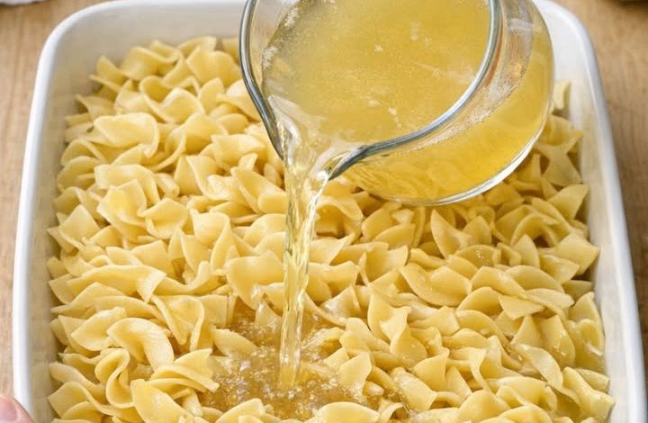 Step 4: The Stir & Finish: Carefully remove the foil (watch for the steam!) and give the noodles a good stir to ensure the butter is distributed and any dry edges are submerged. Re-cover and bake for another 10–15 minutes until the liquid is mostly absorbed and the noodles are tender.