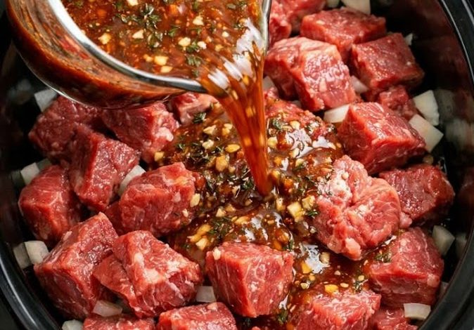 There’s something incredibly satisfying about placing fresh beef into a slow cooker, pouring a glossy, herb-flecked sauce over it, and knowing dinner is essentially handled. This recipe centers on one flavor-packed sauce—a perfect balance of savory depth, gentle sweetness, and garlicky richness that turns simple beef chuck into tender, fall-apart comfort food.