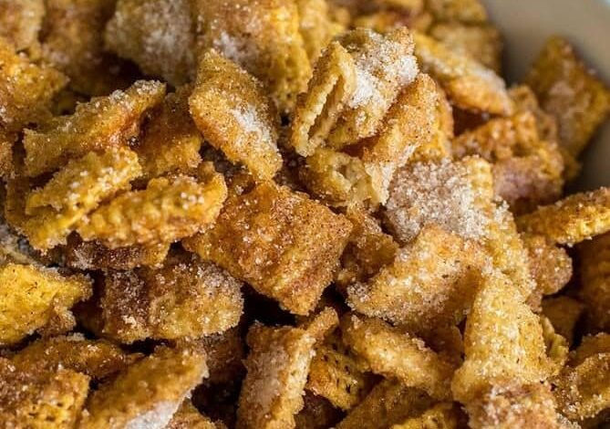 Enjoy the sweet, cinnamon-kissed crunch of your homemade Churro Chex Mix!