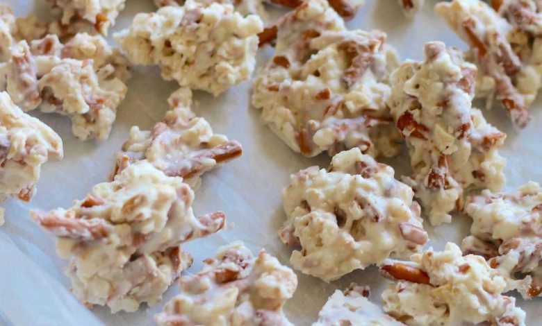 - Mix Dry Ingredients: In a large bowl, combine the Rice Krispie cereal, crushed pretzel sticks, and roasted peanuts.