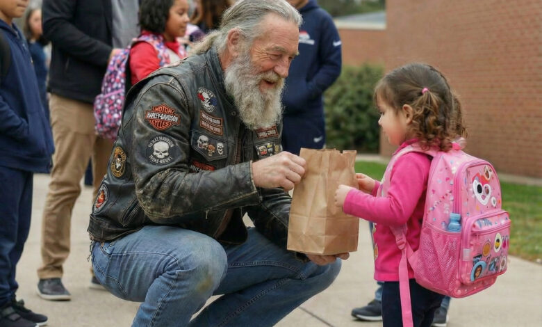 The principal sighed. “For three weeks, your daughter has been slipping away before the morning bell. One of our teachers followed her today. She’s been meeting a man on a motorcycle at the edge of school property and giving him her lunch.”