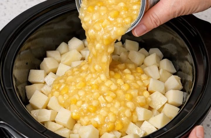Slow Cooker Creamed Corn Potatoes (4 Ingredients)