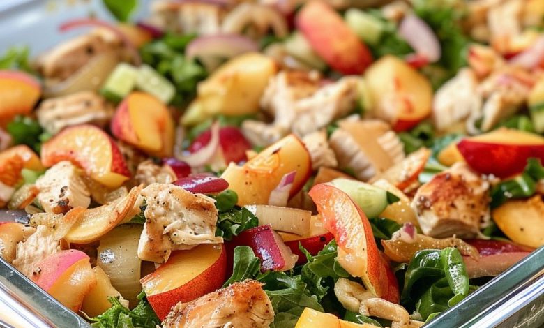 This Baked Nectarine Chicken Salad is a vibrant and flavorful dish that’s perfect for a light summer meal. The juicy nectarines add a touch of sweetness that pairs beautifully with the savory chicken, while the crumbled feta cheese and sliced almonds bring a delightful textural contrast.
