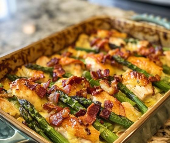 Asparagus & Bacon Chicken Potato Casserole is a delectable and hearty dish that combines the robust flavors of chicken, the savory taste of bacon, and the fresh, crisp texture of asparagus with creamy potatoes. This dish not only pleases the palate but also provides a nutritious meal suitable for any occasion. Its versatility and ease of preparation make it a favorite among home cooks and food enthusiasts alike.