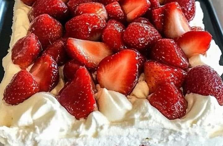 - Assemble the cake: Layer graham crackers, cream mixture, and strawberries in a 9×13 inch baking dish.